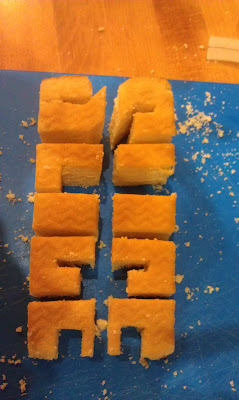 To make a start i am going to create the individual letters out of cake while cutting them on an angle to give the elusion that the word has been sliced.