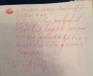 We were asked to write down a questions we wanted the people critiquing us to answer about our projects.